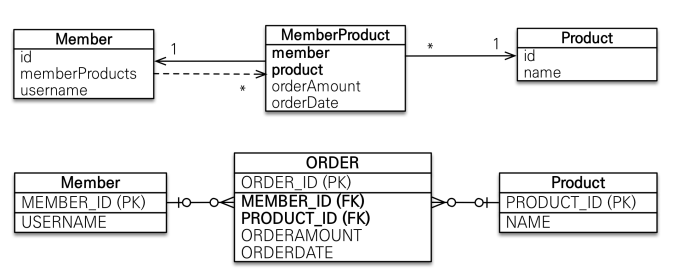 따라서 연결용 엔티티를 추가하여 @OneToMany @ManyToOne 을 활용하여 중간 단계를 두는 것이 바람직함