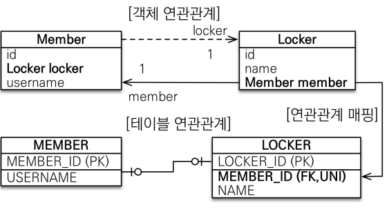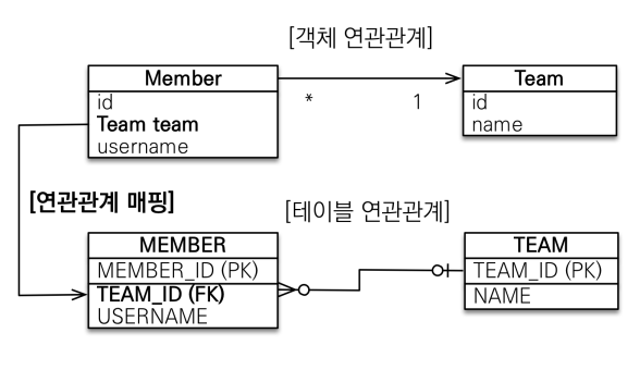 객체와 테이블의 연관관계 주인이 다른 위치에 있는 특이한 구조