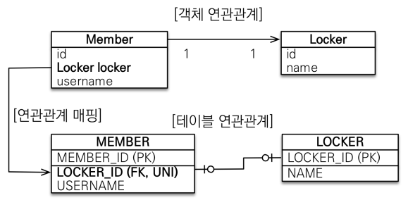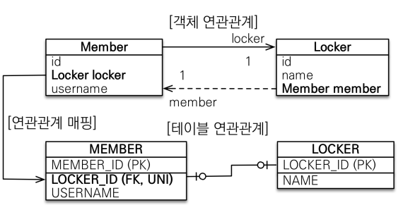 - 주 객체가 대상 객체의 참조를 가지고 있음 주 테이블의 왜래키로 대상 테이블을 찾음