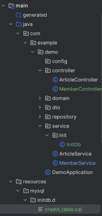 2. 초기 데이터는 Springboot 프로젝트의 InitDb 클래스를 통해 Jpa로 세팅