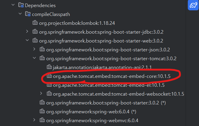 이중 spring boot starter web 라이브러리에 내장 톰캣 관련 라이브러리가 있다.