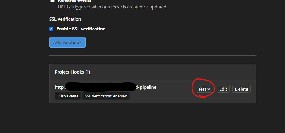 - GitLab webhookURL 은 깃랩 설정에 사용됨으로 복사해 둔다.
