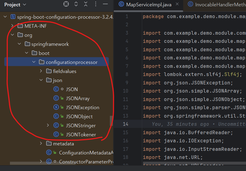 그리고 기존에 의존하던 org/springframework/boot/configurationprocessor/json 경로의 예외가 아닌 org.json 경로의 예외로 바꾸어 던졌다.
