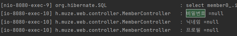 작업을 완료하고 돌려보는데 memberUpdateDto에 데이터들이 Null값으로 들어오고 있었다.